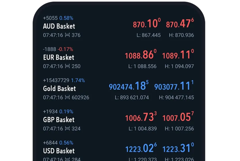 Speculate on the price movements of Basket Indices with high leverage and advanced technical indicators.