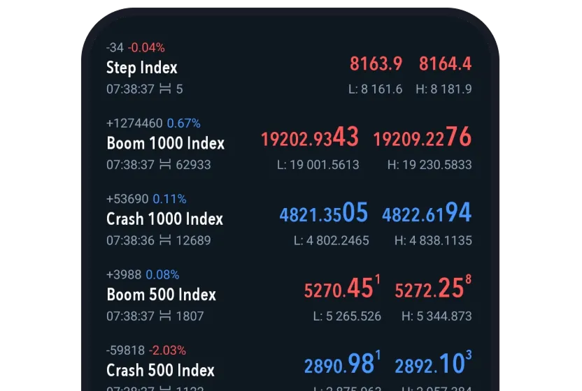 Speculate on the price movements of Synthetic Indices with high leverage and advanced technical indicators.