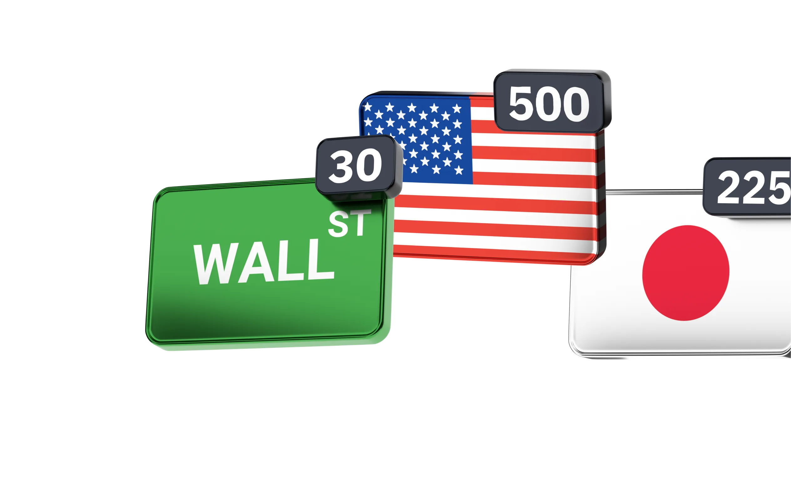 Speculate on the price movements of popular stock indices with high leverage and advanced technical indicators.