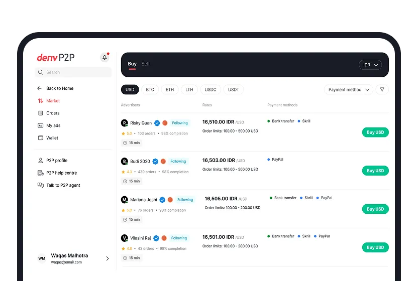Try Deriv P2P now
