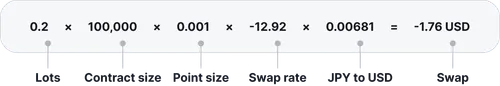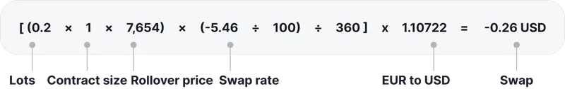 Use this formula to work out how much you’ll pay or receive in swap fees when holding trades overnight.